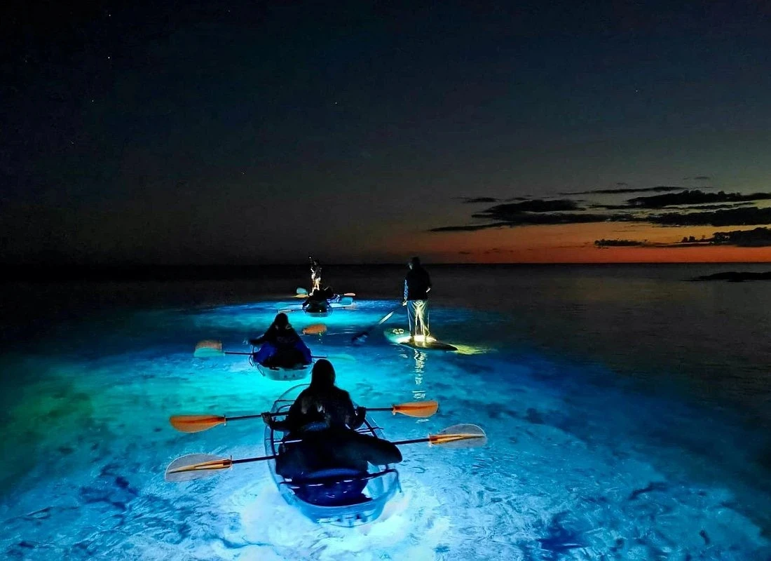 About Night Kayaking in Havelock Island Bioluminescence makes the Andaman Sea glow at night, and the best way to see it is by kayaking. Port Blair and Havelock Island are great places for this adventure. A trained guide will teach you, keep you safe, and let you explore freely. You can even share a kayak with a partner, making it more fun and a little exercise too! Just tie your hair, wear the life jacket we provide, take off your shoes, and you're ready for an amazing night kayaking trip. Visiting Andaman? Don't forget to try Night Kayaking and see the magical glowing water!