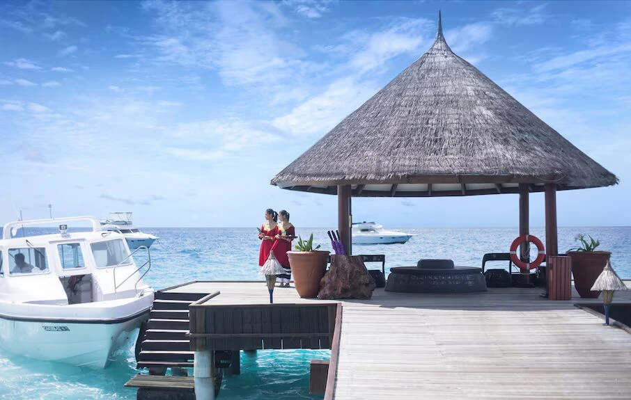 A 45-minute ride from the airport brings you to a contemporary resort on heart shaped Hembadhu Island with stylish thatched-roof villas tucked over a 1000-year old coral atoll. Book an all-inclusive Renew your Vows,package that includes a photoshoot with champagne breakfast and indulge in South American dining. Volunteer at the coral nursery as 'Custodians of the Reef to become part of our award-winning environmental protection and conservation program. Divers can discover the secrets of the deep blue including a 30-year old shipwreck, while adventurers explore a range of water sports and curated island activities.